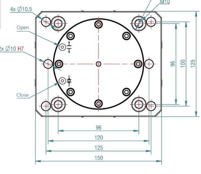 | Mounting Interface | 150 × 126 mm with Ø10.5 mm holes |
