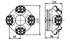 Multi holder with 4 Macro chucks (prepared for total 5 chucks). Angeled positions clears the paths for machine tools. NOTE: Also available with 5 Macro chucks, ask for 3R-682.600-245 Requires drawbar 3R-605.2 (x4) Optimal for 5-axis machines. Macro chucks 3R-600.24-S, included, 4 pcs. Mounted onto a MacroMagnum pallet. Weight 10 kg