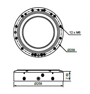 Chuck for permanent mounting on the machine table or into a PM press. Fixed index positions 4×90° Hardened references Clamping force 23 000 N Permissible torque 600 Nm Required drawbar 3R-695.2-220 Required air pressure, – 6±1 bar Weight 11 kg