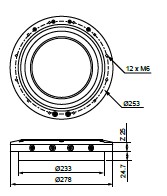 Pneumatic built-in chuck, Matrix 220, 3R-SP28340 Chuck for permanent mounting in the machine table or into a PM press. Fixed index positions 4×90° Solid XY-References Hardened references Clamping force 23 000 N Permissible torque 600 Nm Required drawbar 3R-695.2-220 Required air pressure, – 6±1 bar Weight 10.6 kg