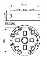 Pneumatic chuck (low profile), Macro, 90945.01 Pneumatic chuck for permanent mounting on the machine table. Clamping force 6.2 kN Required drawbar 3R-605.2RS Fixed index positions 4×90° Weight 2 kg